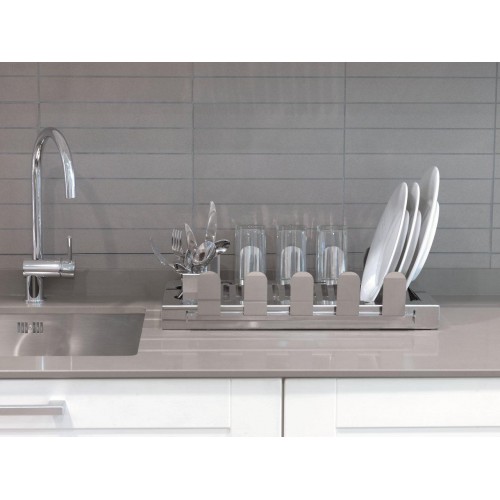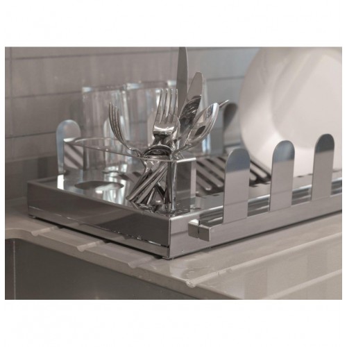 Escurreplatos en acero inoxidable 2 cuberteros, 2 escurrevasos y bandeja recoge agua.