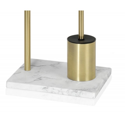 Este portarrollos de baño con escobilla de WC tiene una base y una estructura cuadrada, pero el recipiente de la escobilla es cilíndrico