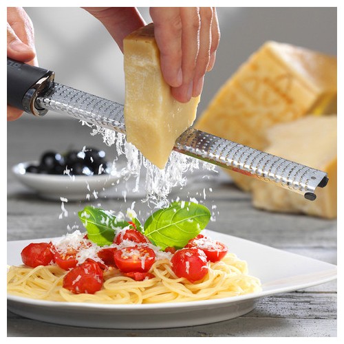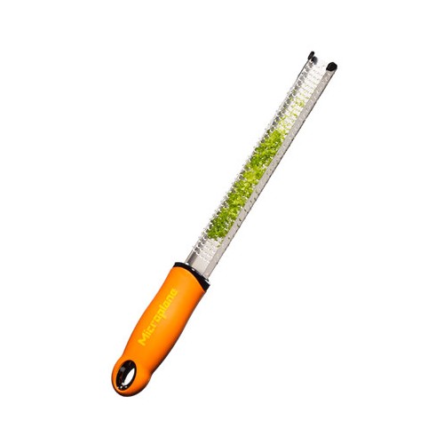 El rallador Zester es el modelo más representativo de Microplane. Su cuchilla tiene un filo increíble que nos permitirá rallar con facilidad cualquier alimento duro consiguiendo una ralladura finísima. Es ideal para quesos duros como el parmesano, cítricos, chocolate, frutos secos y vegetales como el ajo y la cebolla. Mide 32,5cm de largo y 3,5cm de ancho y dispone de un mango suave ergonómico.