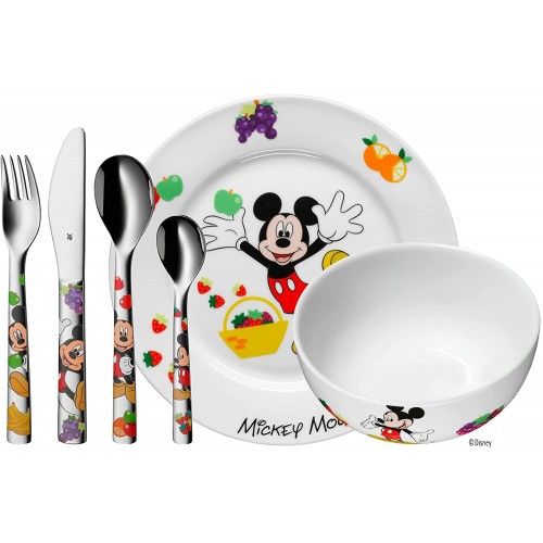 WMF Disney Mickey Mouse - Vajilla para niños 6 piezas, incluye plato, cuenco y cubertería (tenedor, cuchillo de mesa, cuchara y cuchara pequeña) (WMF Kids infantil)