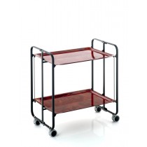 Este carrito plegable está fabricado con un armazón metálico negro y sus bandejas están laminadas en raiz. Descubre el poder del diseño y la utilidad en un mismo producto, ya que es fácil de guardar cuando no lo estés utilizando. INFORMACION Material: Armazón metálico Bandejas laminadas Detalles: Plegable Con ruedas Color: Blanco y naranja Carrito plegado: 71x86x9 cm.