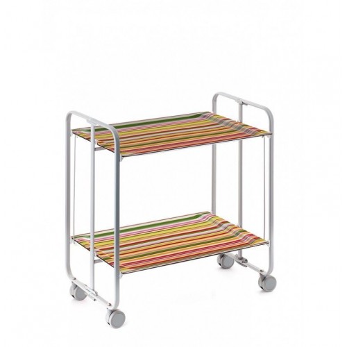 Este carrito plegable está fabricado con un armazón metálico gris aluminio y sus bandejas están laminadas en madera con vinilo de ensalada. Descubre el poder del diseño y la utilidad en un mismo producto, ya que es fácil de guardar cuando no lo estés utilizando. INFORMACION Material: Armazón metálico Bandejas laminadas Detalles: Plegable Con ruedas Color: Blanco y naranj