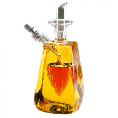 Garuti Vinagrera aceitera mixta, el aceite sale en antigoteo, no mancha y el vinagre en spray, repartiendose bien por todo el plato y conservando el vinagre durante mas tiempo. Artículo de la maxima calidad. Hecho a mano, soplado a boca en vidrio técnico PIREX. Producto nacional.