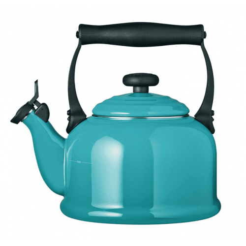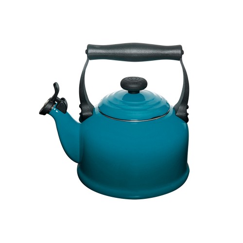 Gracias a que el acero esmaltado es un material altamente conductivo, las teteras Le Creuset alcanzan el punto de ebullición con eficacia. Cuentan con un asa segura, una gran tapadera con ventilación, un diseño redondo y colores vivos. Las teteras Le Creuset se pueden usar sobre todas las fuentes de calor, incluso con inducción. Silbato fijo. Capacidad: 2,1L