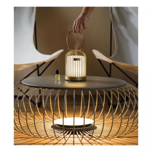 Un verdadero escaparate de luz y aromas, el difusor Lampion viste tanto los interiores como las terrazas cubiertas y crea una atmósfera suave y relajante durante varias horas (4-5 de duración de la batería).
