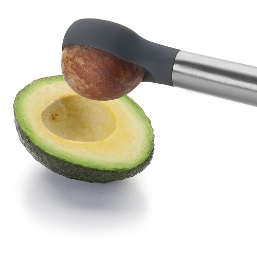 Cuerpo fabricado en acero inoxidable de gran calidad. Hilo de corte fabricado en acero inox 18/10. Diseñado para cortar el aguacate en láminas uniformes con un solo movimiento. Extrae el hueso sin rallar el alimento.